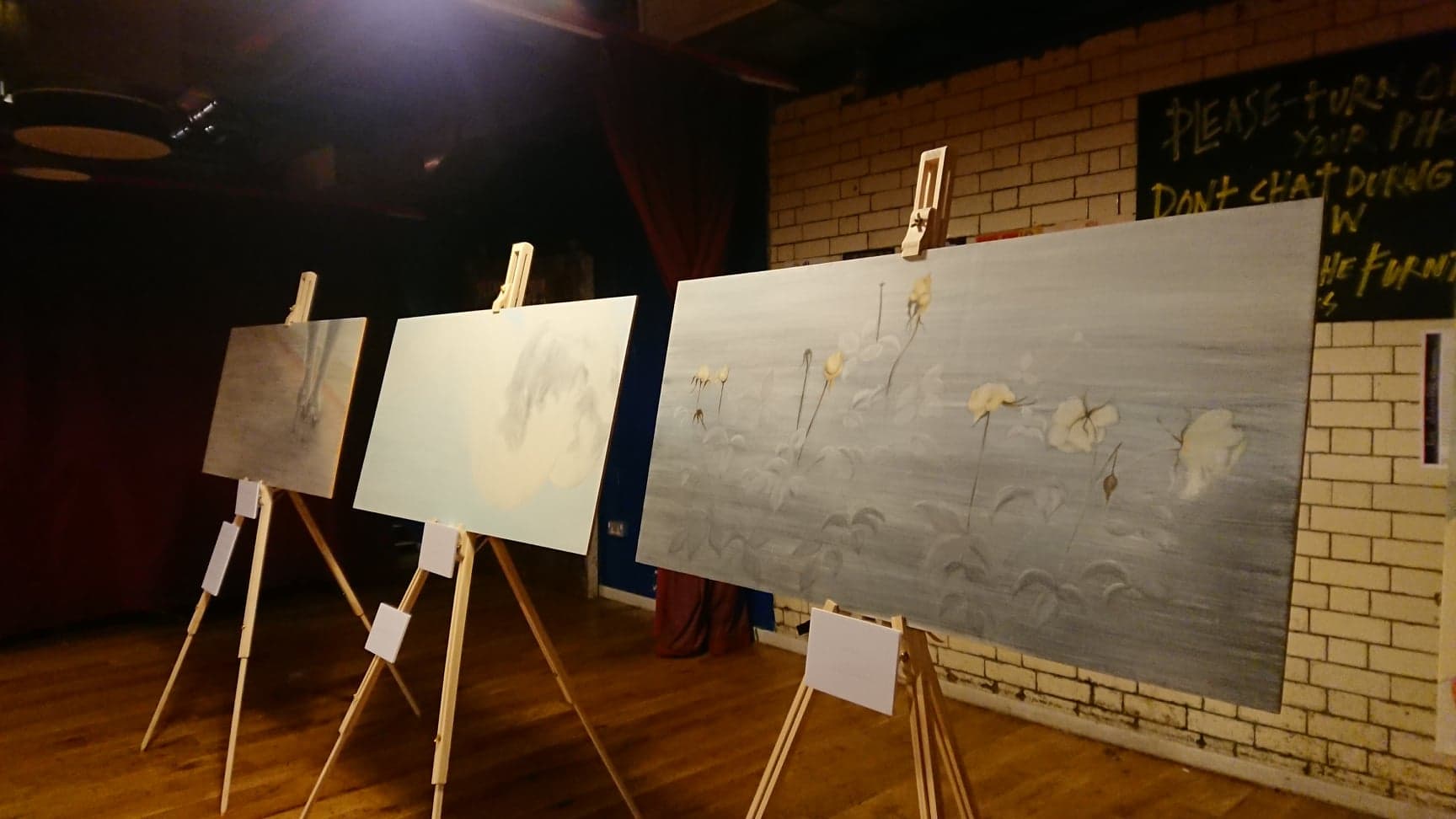 I have shown work up and down the Eastcoast mainline in waiting rooms and lounges from Edinburgh to Leeds. In beautiful listed buildings in Newcastle. Comedy clubs and bars. In a fine Cathedral and a