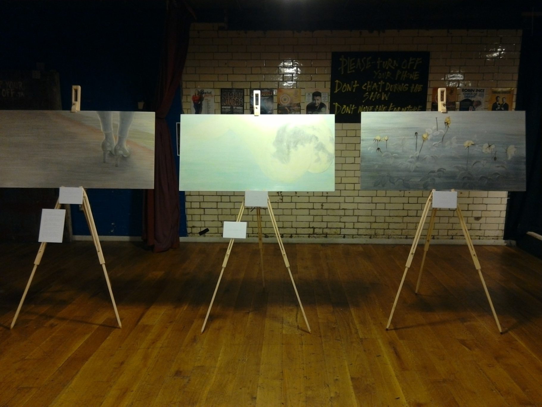 I have shown work up and down the Eastcoast mainline in waiting rooms and lounges from Edinburgh to Leeds. In beautiful listed buildings in Newcastle. Comedy clubs and bars. In a fine Cathedral and a